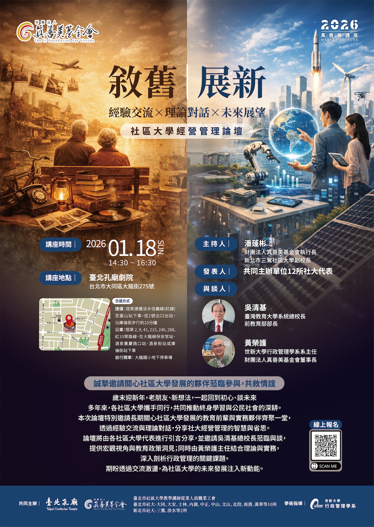 從教育政策的宏觀視角,到行政管理的實務關鍵,帶你一次看懂社區大學如何走得更穩、更遠。